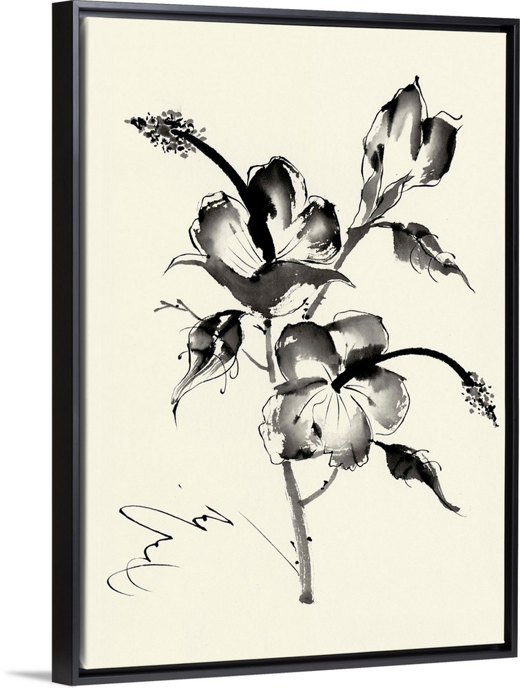 Art Black and White Wall Art Charcoal, Onyx, and Ivory Decorative Art Florals Hibiscus Illustrations Botanical Illustrations Painting Nan Rae Watercolor