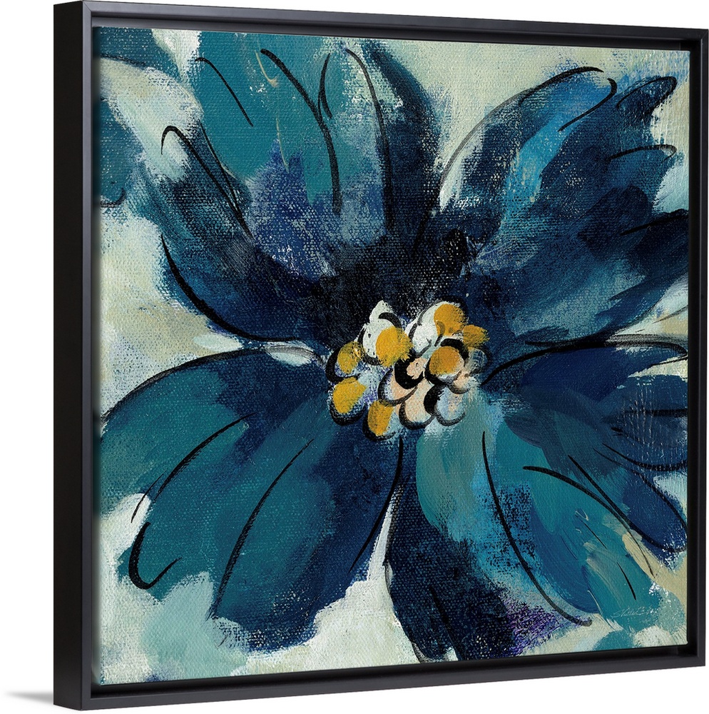 <p>Square painting of a single blue flower with a gold pistil.</p>