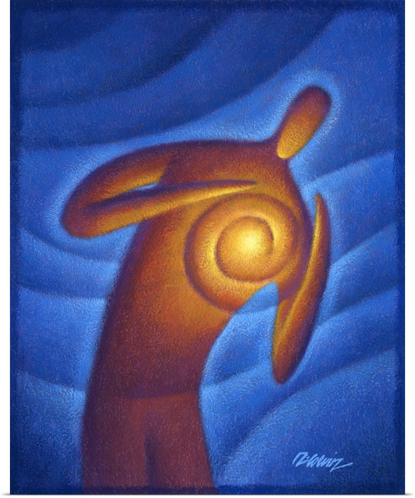 <p>Artistic painting of a human figure holding a ball of fire in his heart.</p>