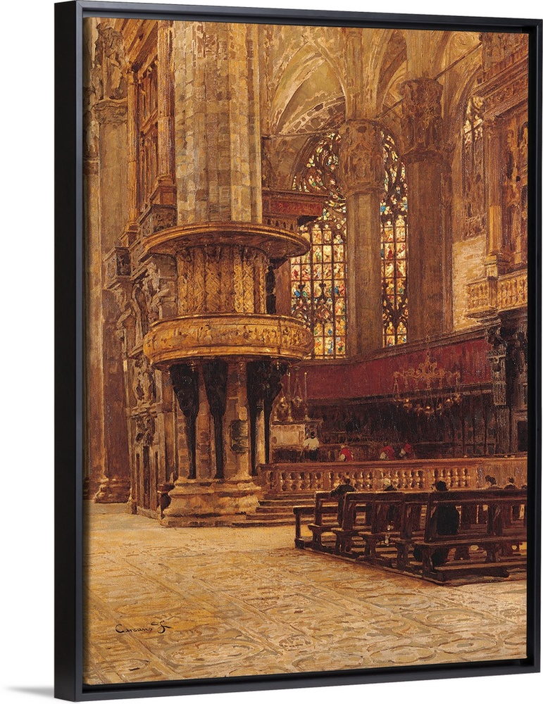 <p>Inside View of the Cathedral, Milan, by Filippo Carcano, 1890 - 1899 about, 19th Century, oil on canvas, - Italy, Lombardy, Milan, IntesaBci Collection. All. Interior Cathedral Milan columns arches arcades stained glass windows pews balustrade banister ch</p>
