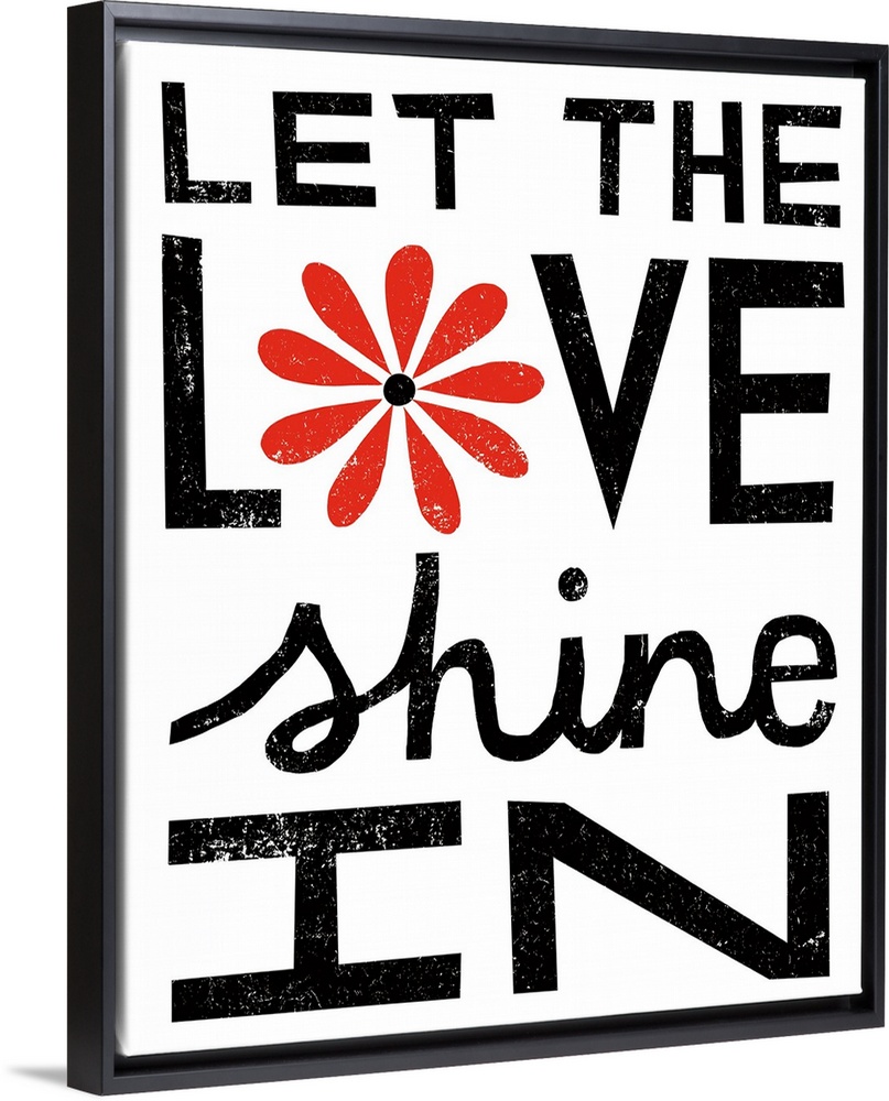 <p>"Let the love shine in" in bold black letters with a red flower.</p>