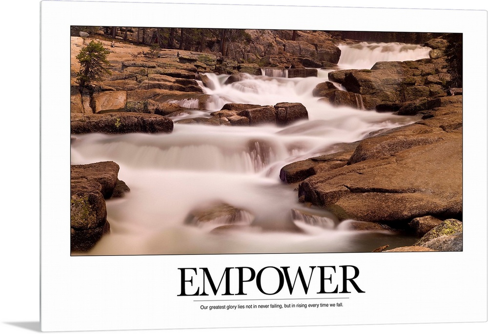 <p>Motivational poster depicting a stream flowing through rocks with the text, "Empower: Our greatest glory lies not in never failing, but in rising every time we fall."</p>