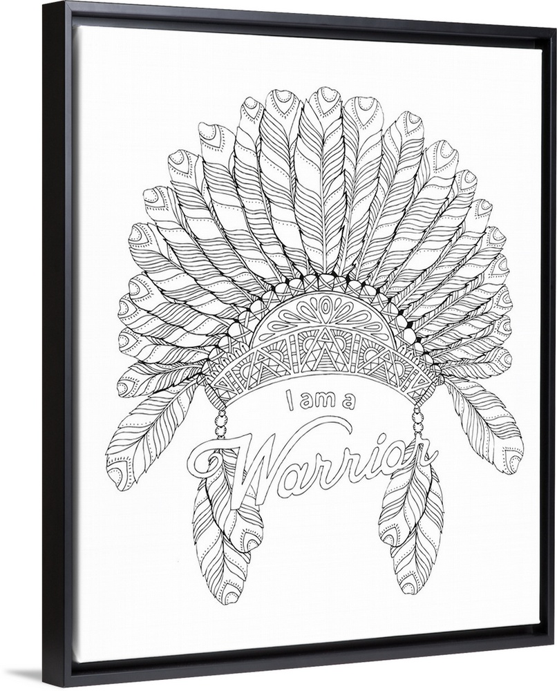 <p>Black and white line art of a feathered headdress and the phrase "I am a Warrior" written below it.</p>