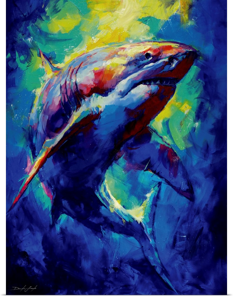 Art Blue Wall Art Contemporary Art Painting Dimitri Sirenko Wildlife Marine Life Shark
