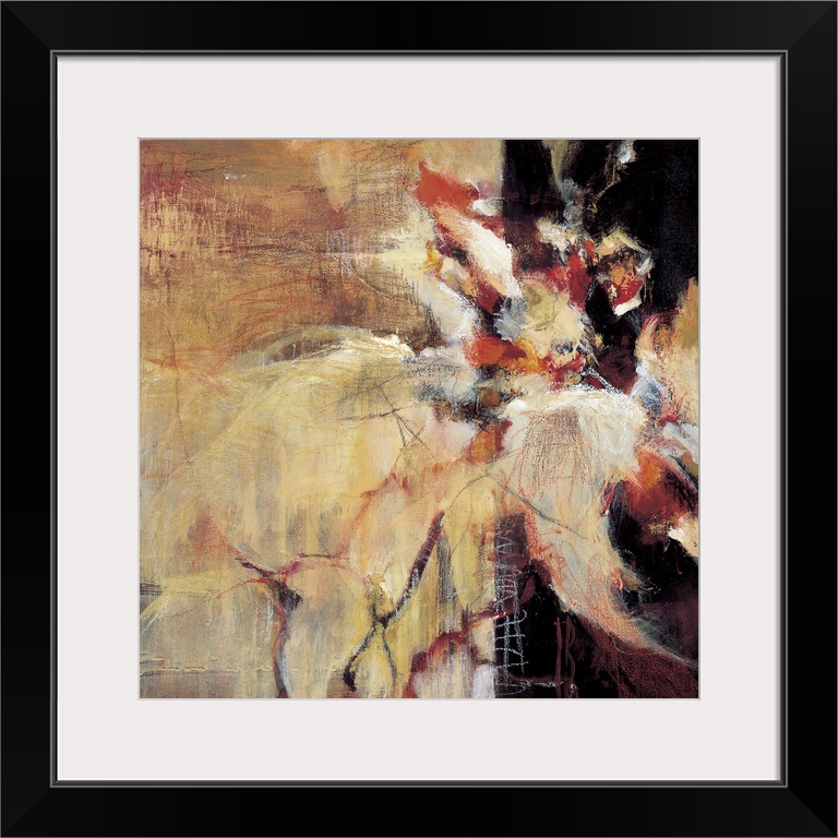<p>Warm tones and rough looking textures give this abstract painting depth.</p>