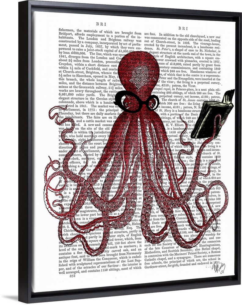 Art Decorative Art Fab Funky Graphic Art Illustrations Painting Reading and Literature Surrealism Wildlife Marine Life Octopus and Squid
