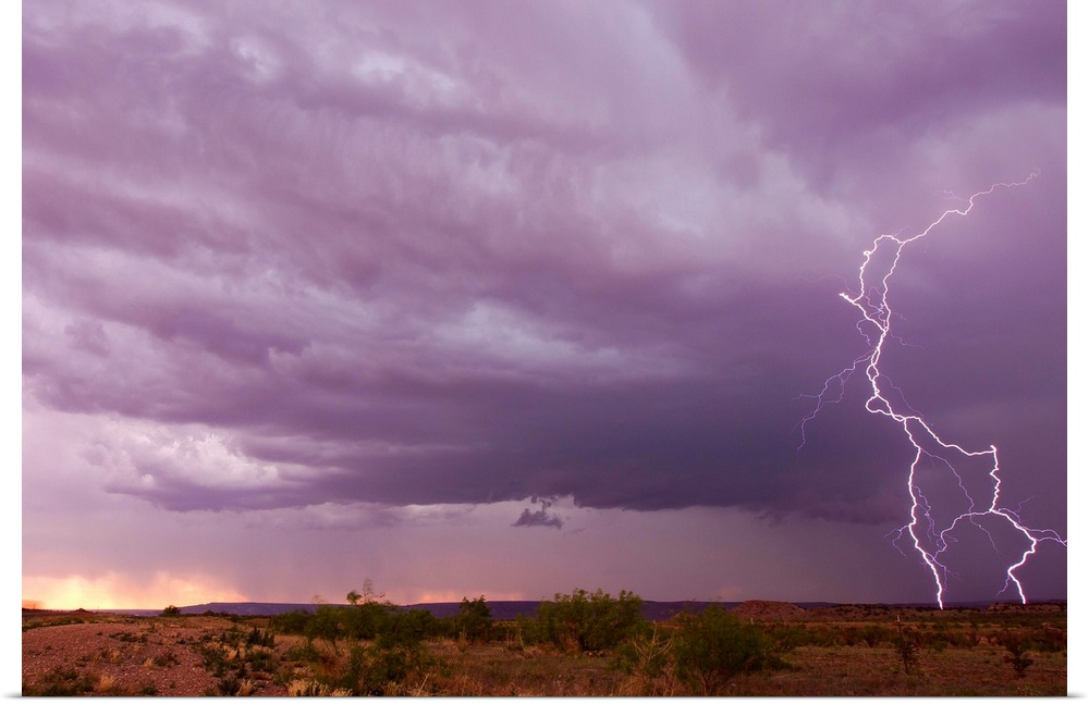 <p>Intense purple lightning bolts strike in the desert of New Mexico.</p>