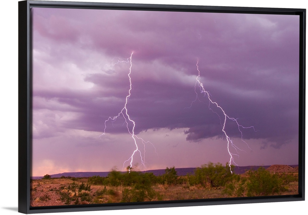 <p>Intense purple lightning bolts strike in the desert of New Mexico.</p>