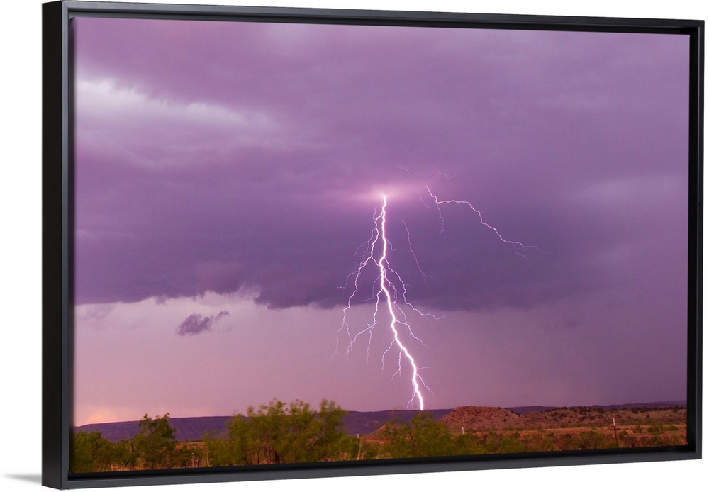 <p>Intense purple lightning bolts strike in the desert of New Mexico.</p>