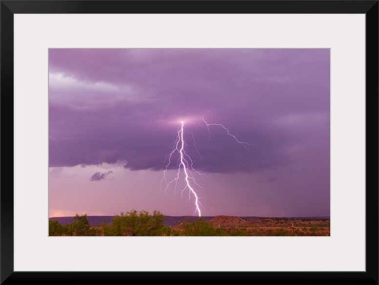 <p>Intense purple lightning bolts strike in the desert of New Mexico.</p>