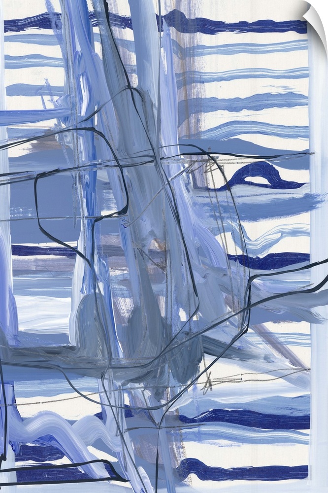 <p>A contemporary abstract painting using blue tones and horizontal striped patterns.</p>