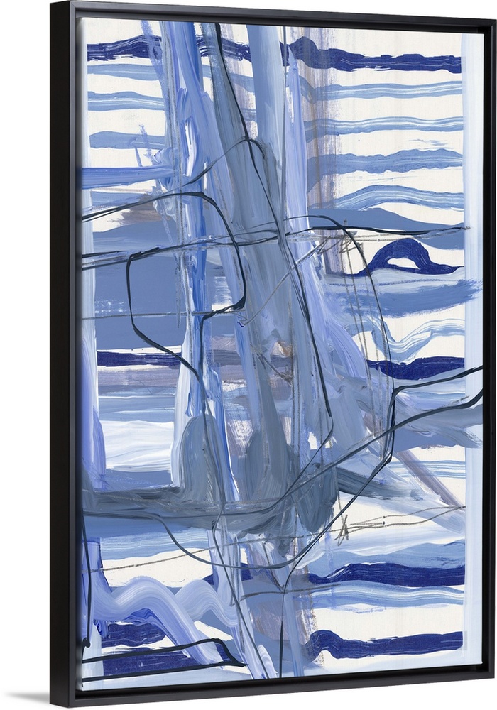 <p>A contemporary abstract painting using blue tones and horizontal striped patterns.</p>