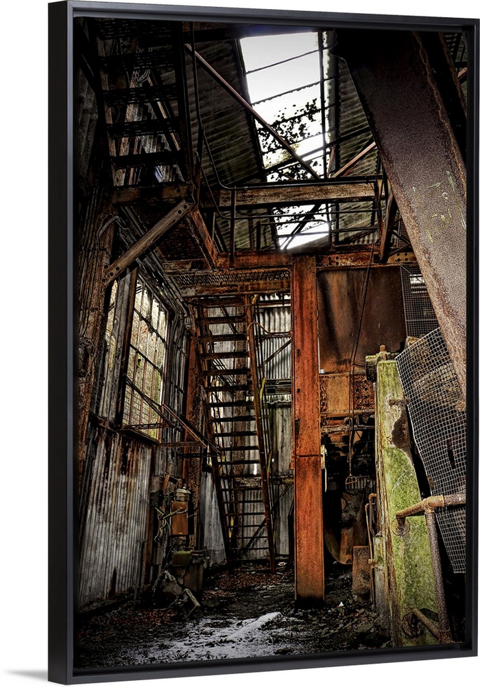 <p>Interior of a derelict industrial building</p>