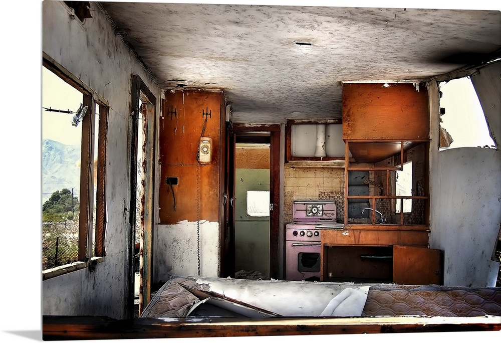 <p>Interior of an old derelict caravan</p>