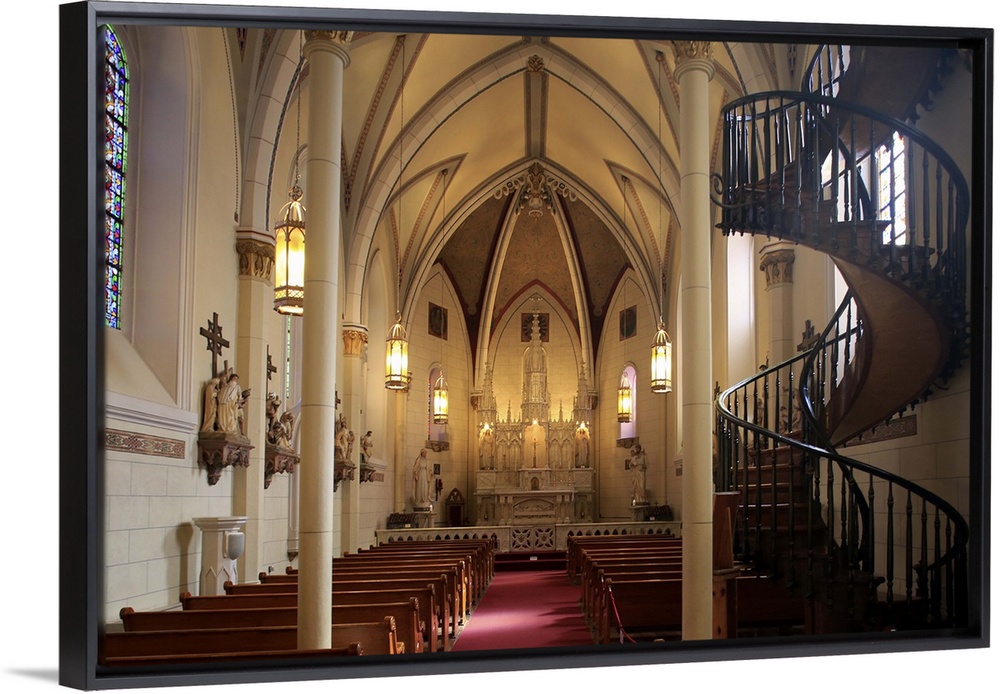 <p>The interior view of Loretto Chapel with the famous Miraculous Staircase.</p>