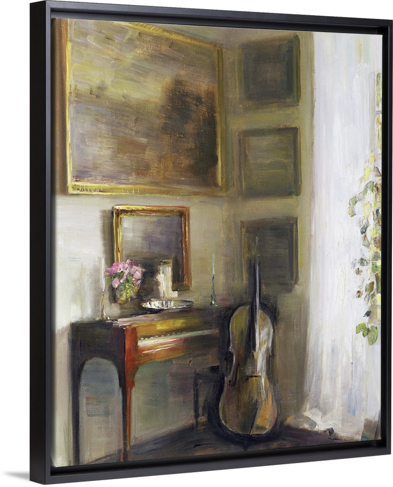 <p>CBR161851 Interior with Cello and Spinet (oil on canvas) by Holsoe, Carl (1863-1935)</p>