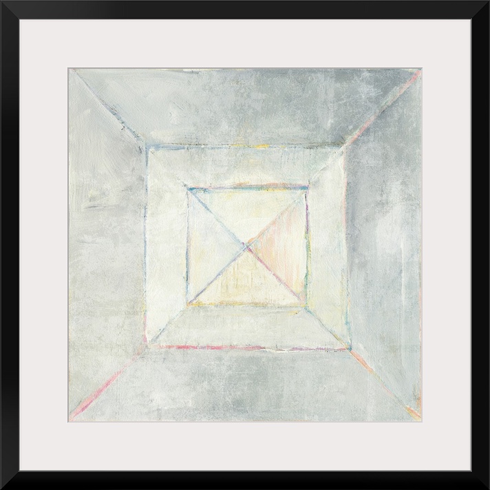 <p>Abstract contemporary painting with lines and square shapes in shades of grey.</p>