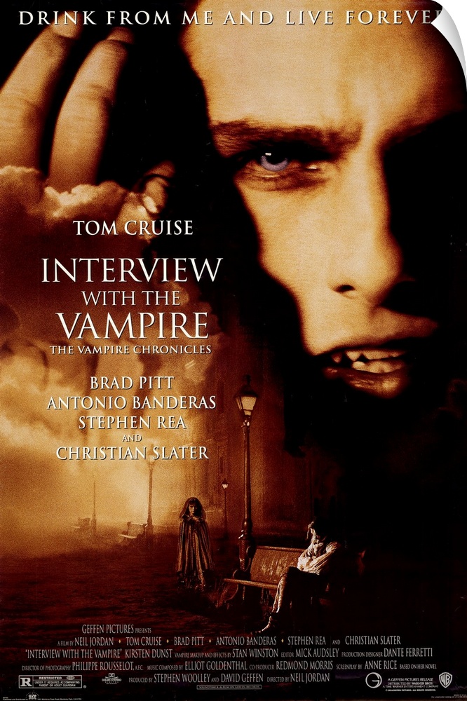 <p>Portrayal of the elegantly decadent world of vampires and their prey, which features the perverse Lestat (Cruise) who decides to make 18th-century New Orleans aristocrat Louis (Pitt) his latest recruit. Only problem is Louis is horrified by his blood-sucking nature and whines about it for 200 years (it does get tedious). Lestat even makes a child-vampire, Claudia (Dunst), for their own very dysfunctional family but this doesn't turn out well. Director Jordan brings some much needed humor to the dark mix along with some overdone gore. The first book in Anne Rice's The Vampire Chronicles was a 17-year film project beset by controversy, including the casting of Cruise (who looks nothing like Rice's description of the character, although Pitt does), leading to an outcry among the cult book's fans though Rice finally came around. Slater replaced the late River Phoenix as the interviewer.</p>