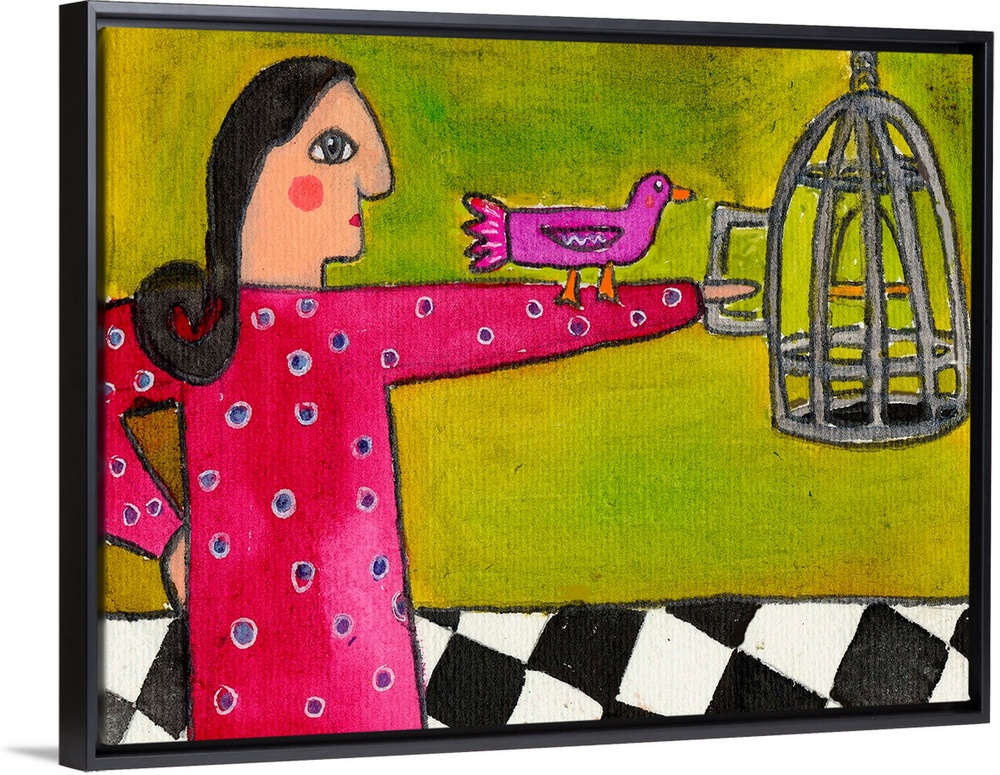 Art Wyanne Art Decorative Art Green Wall Art Painting People Figurative Watercolor Wildlife Bird