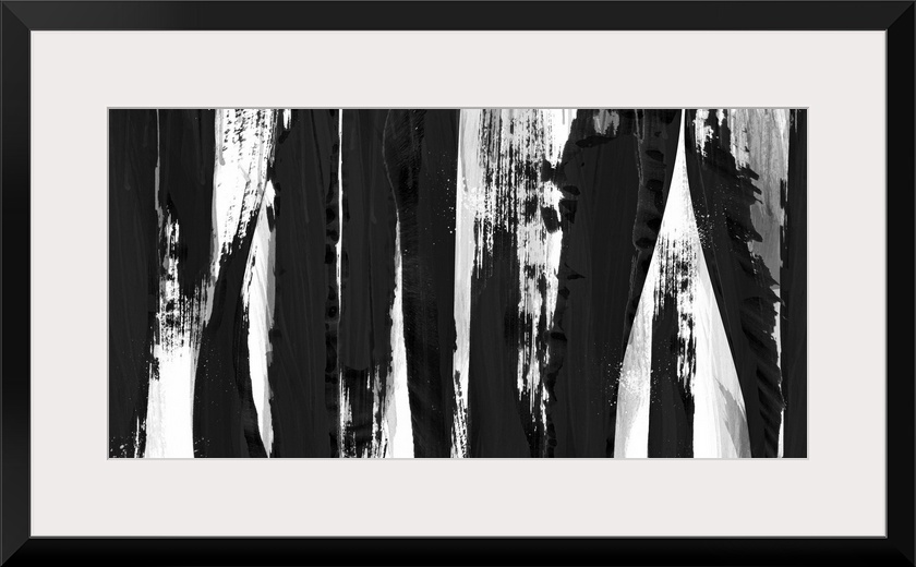 <p>Abstract contemporary painting of heavy dark streaks moving vertically along the canvas.</p>