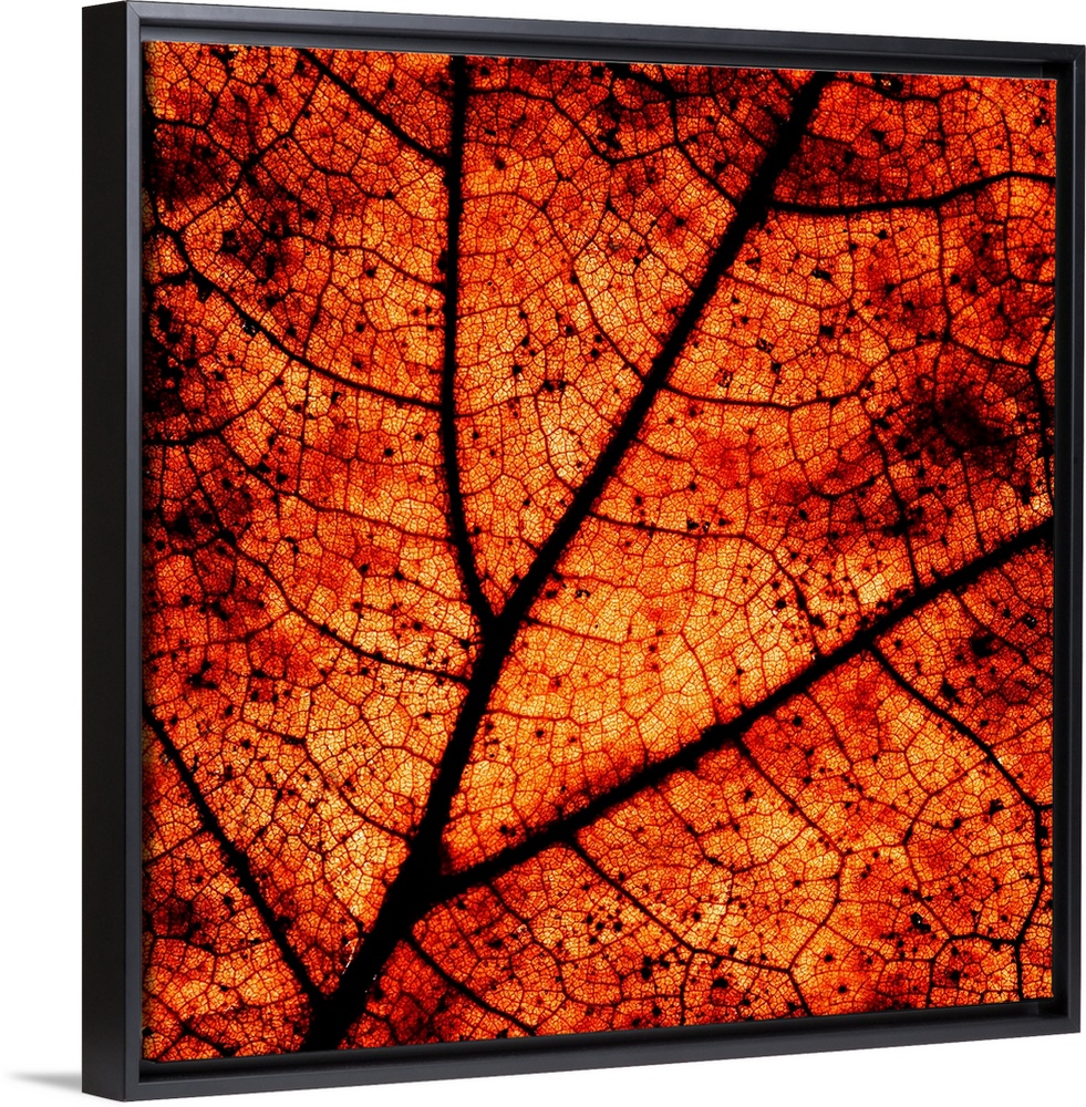 <p>A close-up macro image of the veins in an dry autumn leaf in deep rich golden brown gold.</p>