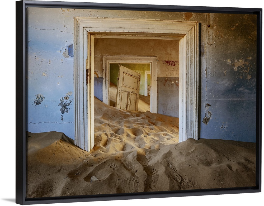 <p>Sand has invaded and taken over these rooms in Kolmanskoppe, Namibia.</p>