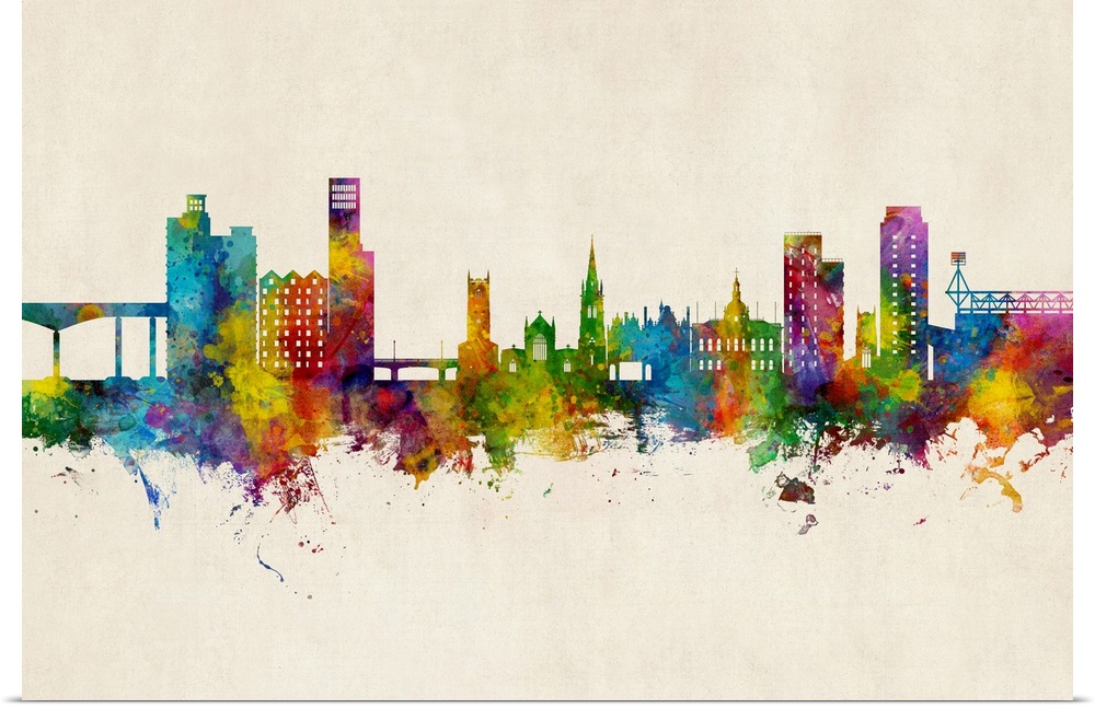 <p>Watercolor art print of the skyline of Ipswich, England, United Kingdom</p>