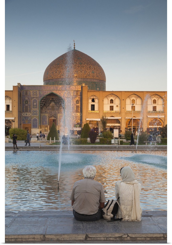 <p>Iran, Central Iran, Esfahan, Naqsh-e Jahan Imam Square, fountains, late afternoon</p>