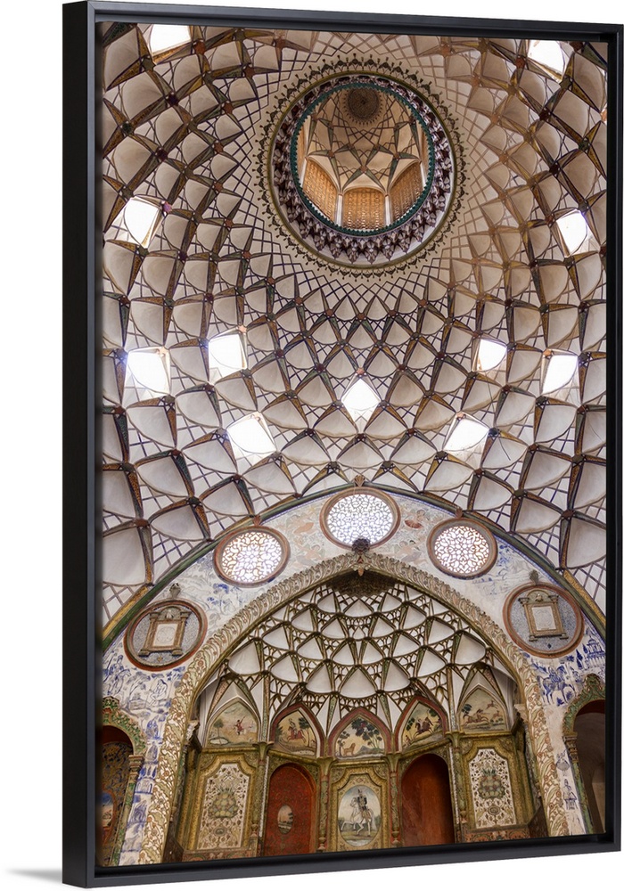 <p>Iran, Central Iran, Kashan, Khan-e Boroujerdi, traditional carpet merchant's house, ornate plasterwork.</p>