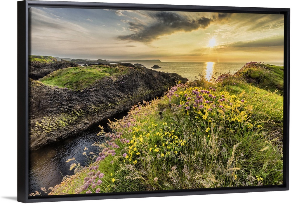 <p>Sunset and flowers on the coast of Ireland.</p>