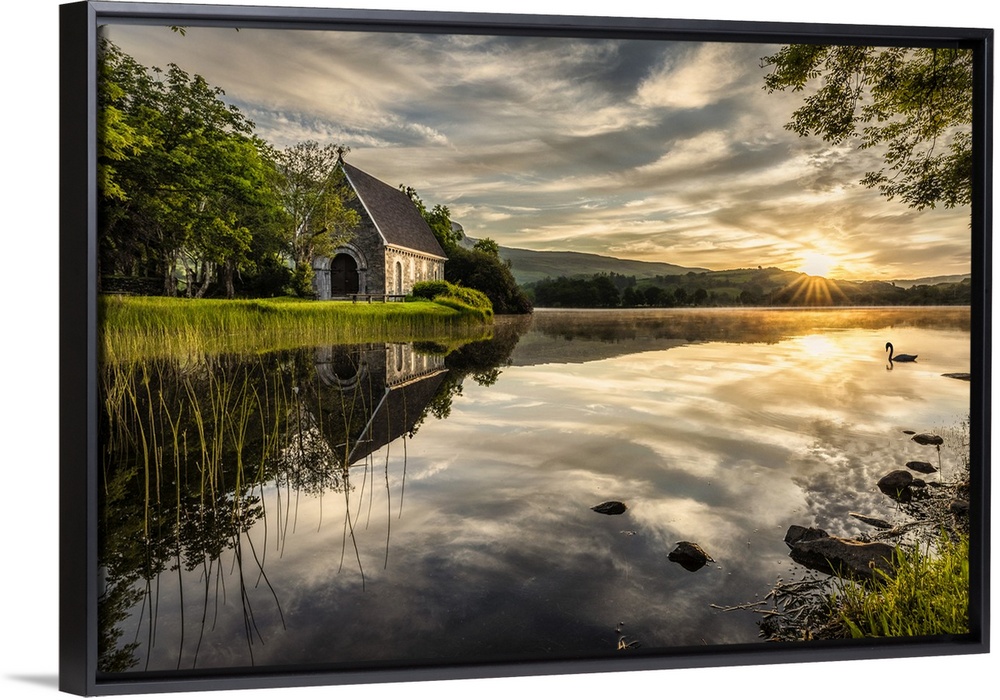 <p>St Finbarr's Oratory church in Gougane Barra, Ireland at sunrise.</p>