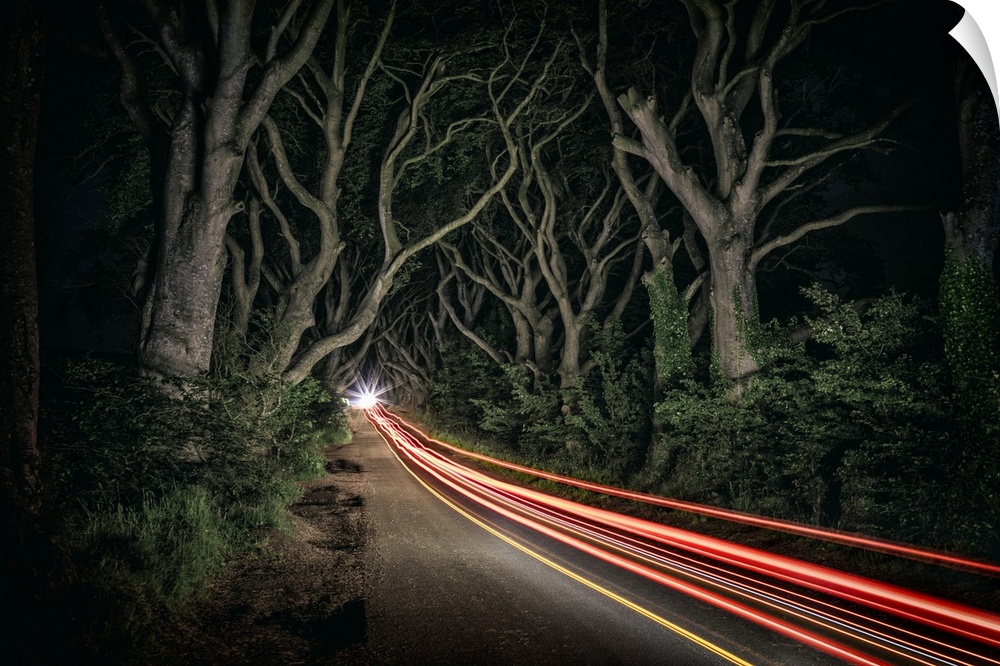 <p>Car trails in the Dark Hedges of Northern Ireland.</p>