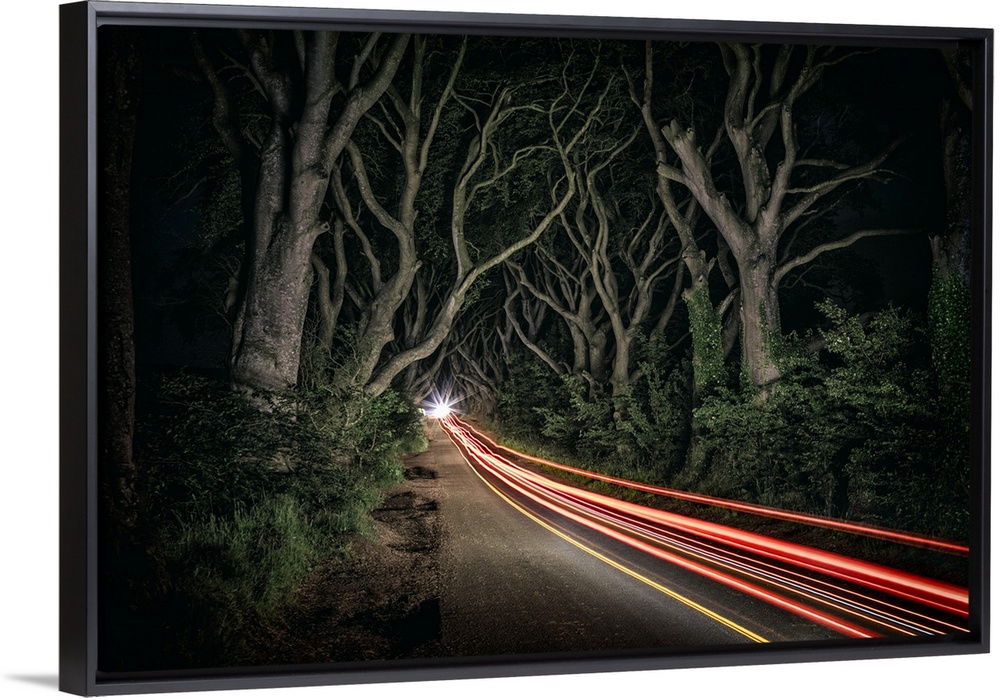 <p>Car trails in the Dark Hedges of Northern Ireland.</p>