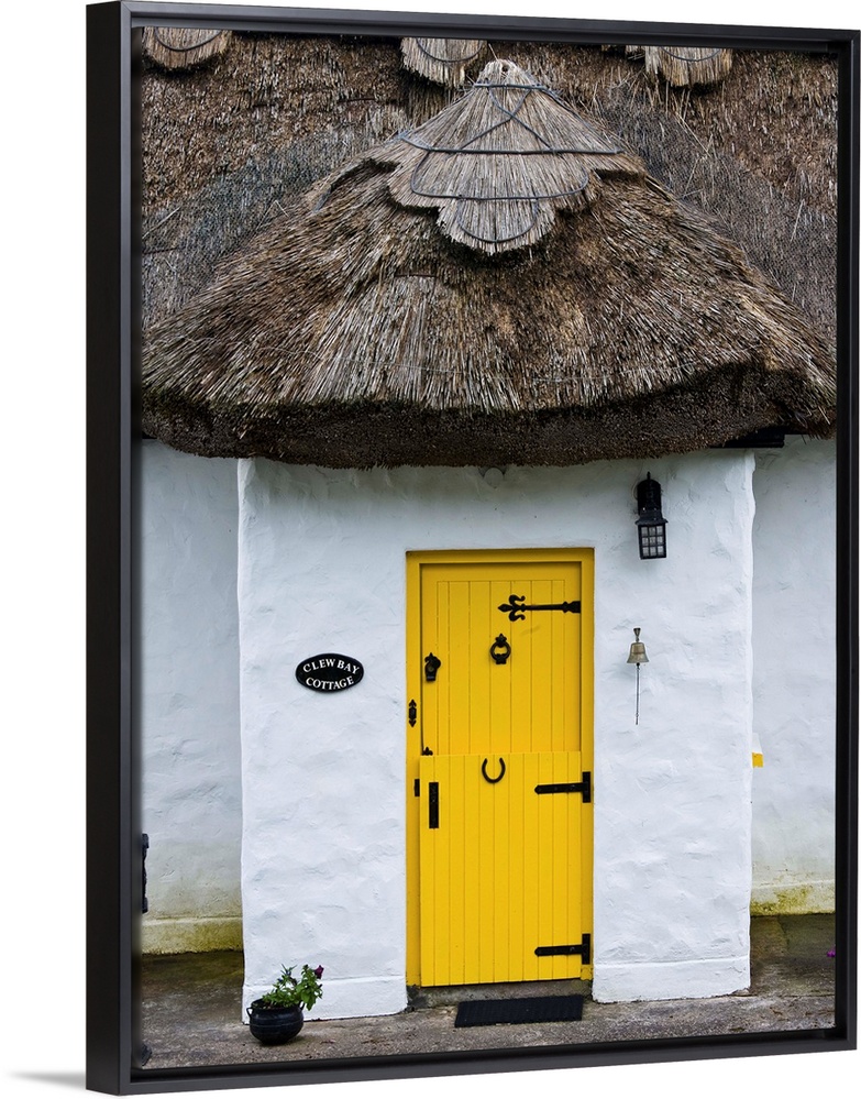 <p>Ireland, Achill Island. Yellow doorway on a thatch roof cottage.</p>