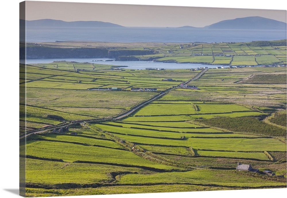 <p>Ireland, County Kerry, Ring of Kerry, Portmagee, elevated coastal landscape.</p>