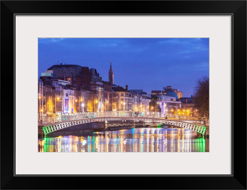 <p>Ireland, Dublin, Hapenny Bridge over the River Liffey, dusk.</p>