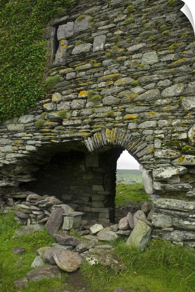 <p>IRELAND, Kerry, Ring of Kerry. Ballycarberry Castle, near Cahersiveen. Ruined archway.</p>