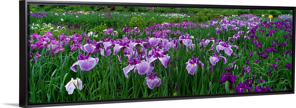 <p>Large, closely cropped panoramic photo of a expansive iris garden in Nara, Japan. Long-stemmed flowers occupy the entire shot.</p>