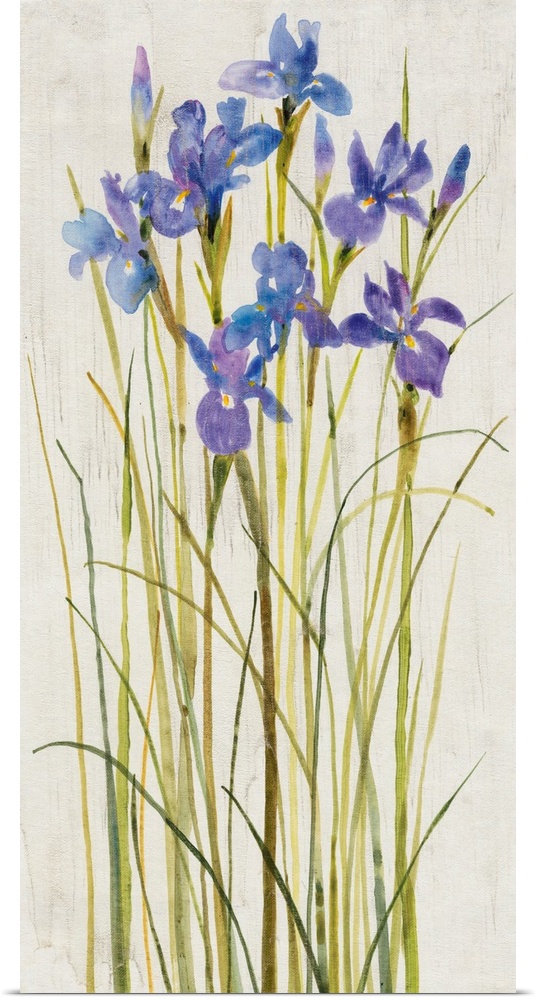 <p>Contemporary artwork of tall blooming irises.</p>