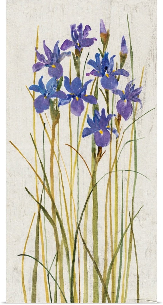 <p>Contemporary artwork of tall blooming irises.</p>