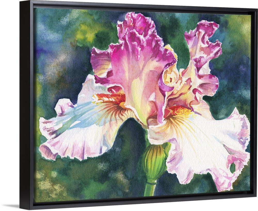 <p>A contemporary watercolor painting of pink and white iris.</p>
