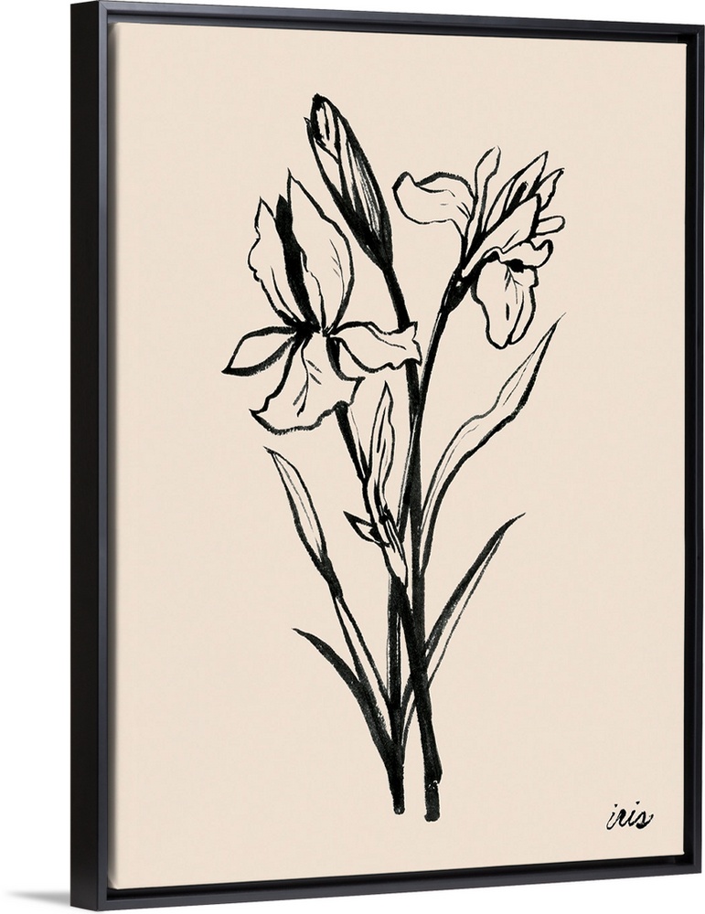 Art Minimalism Black and White Wall Art Decorative Art Florals Iris Painting Grace Popp Watercolor