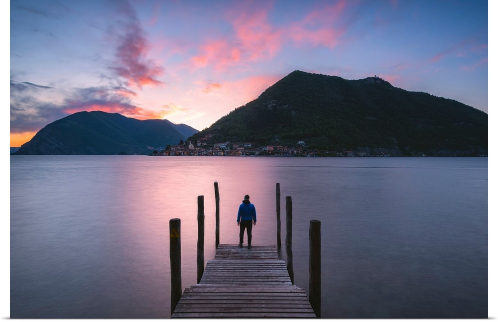 <p>Iseo lake at sunset, Brescia province, Lombardy district, Italy, Europe</p>