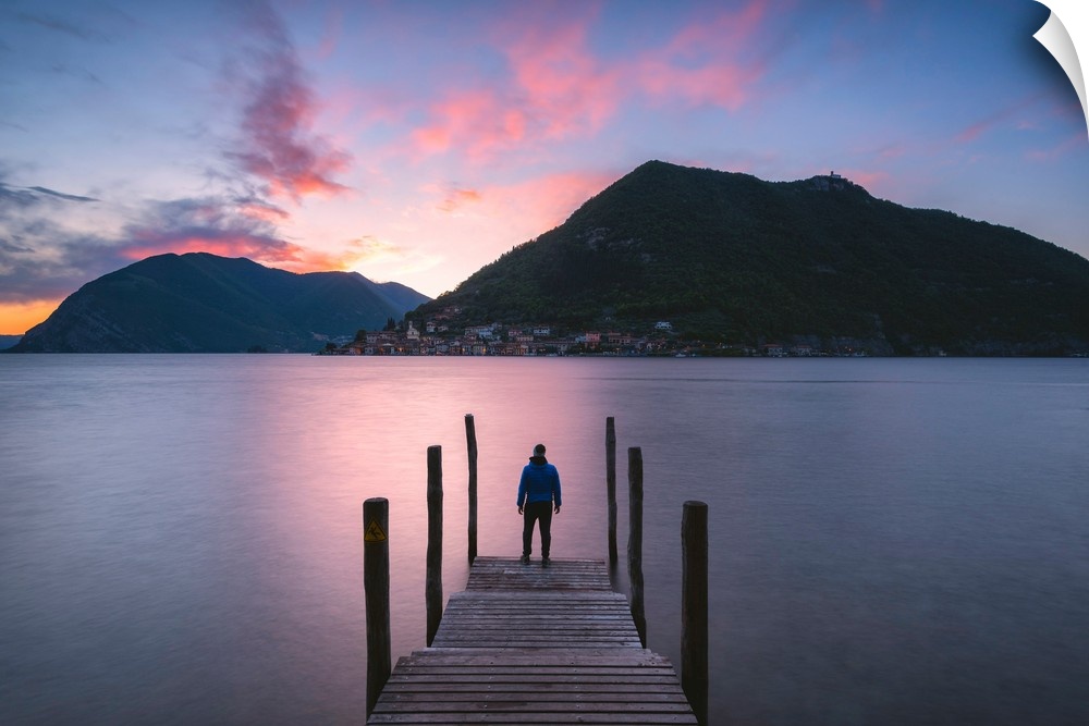 <p>Iseo lake at sunset, Brescia province, Lombardy district, Italy, Europe</p>