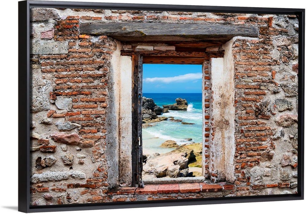 <p>View of the Isla Mujeres coastline framed through a stony, brick window. From the Viva Mexico Window View.</p>