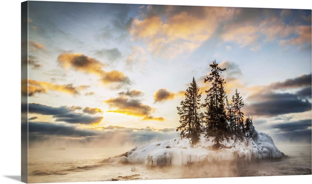 <p>Island in Lake Superior at sunrise; Grand Marais, Minnesota, United States of America</p>