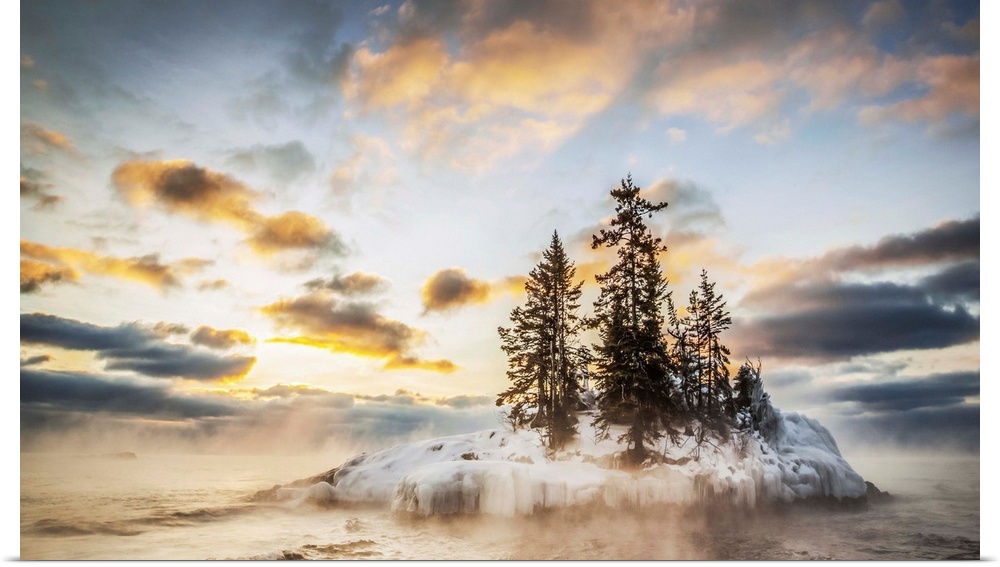<p>Island in Lake Superior at sunrise; Grand Marais, Minnesota, United States of America</p>