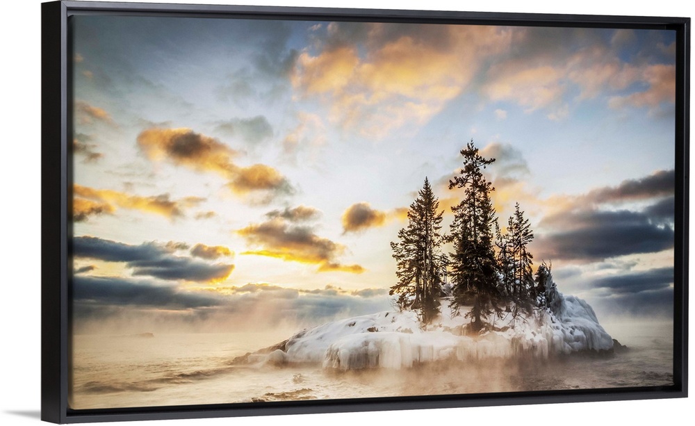 <p>Island in Lake Superior at sunrise; Grand Marais, Minnesota, United States of America</p>