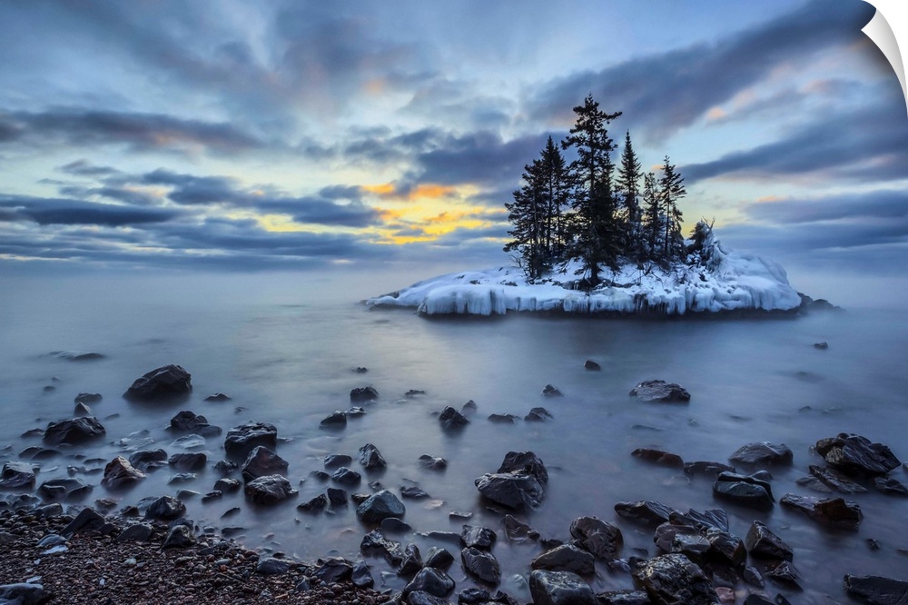 <p>Island in Lake Superior at sunrise; Grand Marais, Minnesota, United States of America</p>