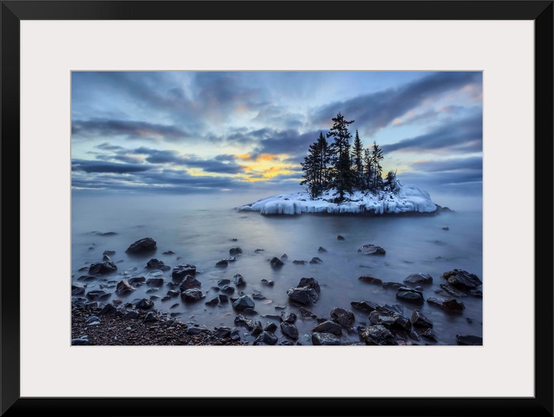 <p>Island in Lake Superior at sunrise; Grand Marais, Minnesota, United States of America</p>